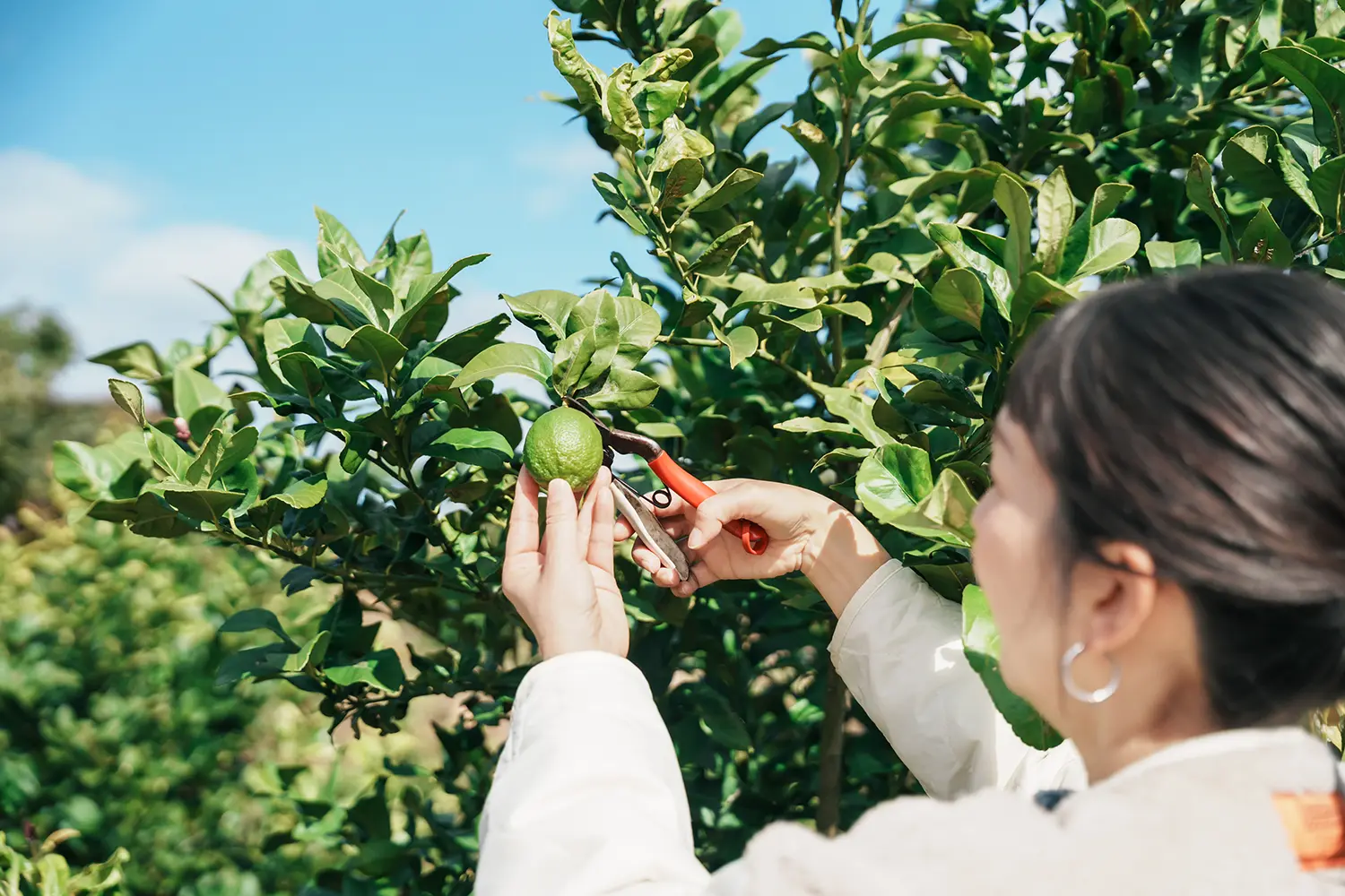 • 戸田さん そうなんですよ。実り立てなのでグリーンレモンですが、これがどんどん黄色くなっていくと、いわゆるスーパーに置いてあるレモンになります。