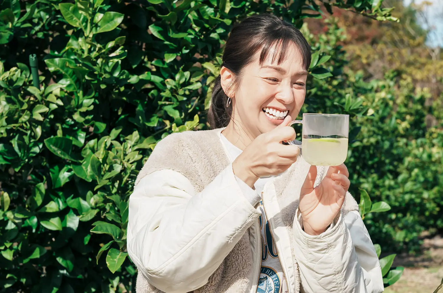 • 戸田さん そうですね。なので、今は師匠の甲斐さんのレモンを使わせていただいて、レモンスカッシュやレモンサワーのもととなるシロップを作成して、販売もしています。飲んでみますか。今日はホットレモンでいきましょう。