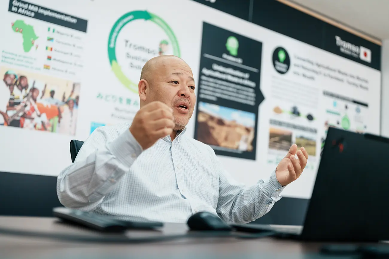 • 上杉さん 正直、当時は創業者も私も、海外でビジネスを展開するなんて全く考えていませんでした。最初は、地方の小さな会社がアフリカに挑戦しているという姿勢がPRになれば、というくらいの考えでした。しかし、2013年にJICAの案件化調査で初めてタンザニアに行ったとき、衝撃を受けました。アフリカでもこんなに米を作っていて、日本と同じように、大量のもみ殻が活用されずに廃棄されている。アフリカはこれから世界一の人口になると言われていましたから、ここにわれわれの技術の需要があり、大きなチャンスがあると直感しました。