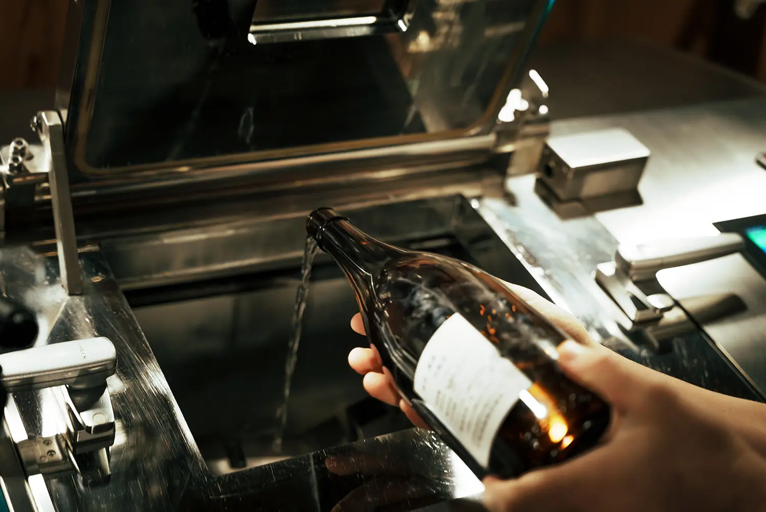 • 三宅さん これは特許も取得した世界で初めての「低温浄溜」の機械です。通常の蒸留ではなく、「浄(きよ)める」という字で「浄溜(じょうりゅう)」と呼んでいます。日本酒を低温で浄溜して生まれた新たなお酒が、「浄酎(じょうちゅう)」なんです。今日は実際に生産を実演してみますね。